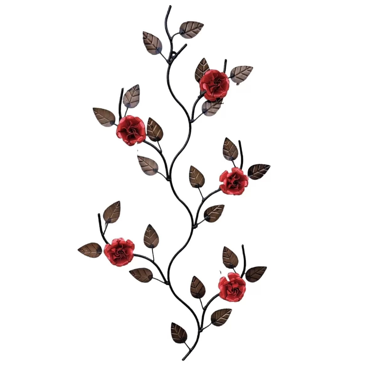 Arranjo de galho com flores e folhas. Possui 5 flores decorativas, elas são enroscadas. Peça rústica e decorativa, delicadeza em cada detalhe. Ferragem possui pintura eletrostática para não enferrujar e não arranhar com facilidade, material resistente, garantindo assim maior durabilidade. Excelência no acabamento, para maior valorização do produto. Podendo ser usado em áreas internas e externas.